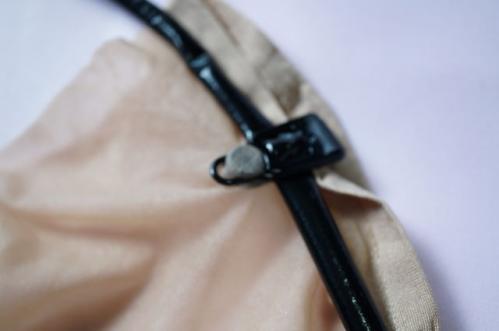 ベルトがストキングの縁を押えるように、ふとももを周回させてください。