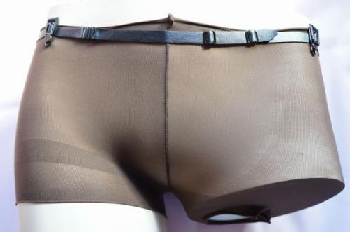 横にベルトが繋がった、エイトカン付きガーターボストンが切り取ったストッキングの縁をフックします。