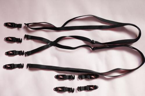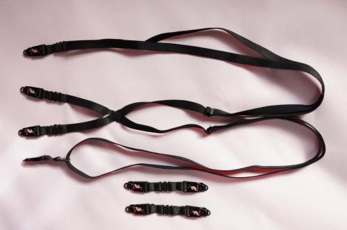 上向きに吊るためのベルト構造は一般的なサスペンダーベルトと同じですが、