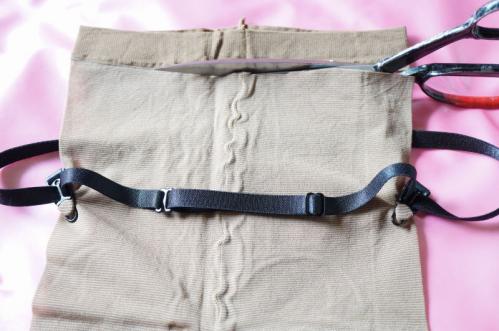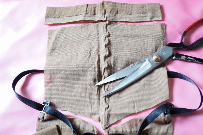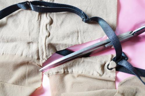 ストッキングをハサミでカットして、もっと快適なローライズな腰穿きストッキングを作りましょう。