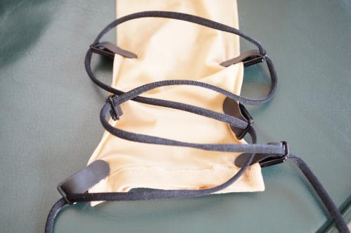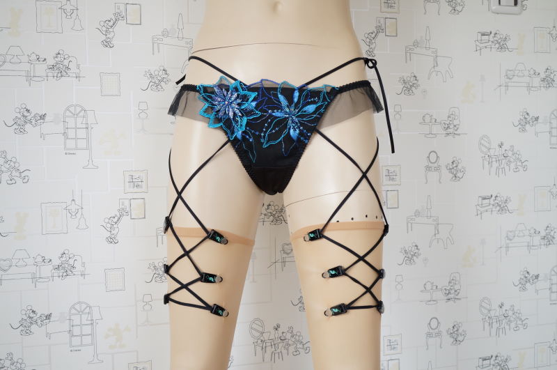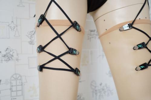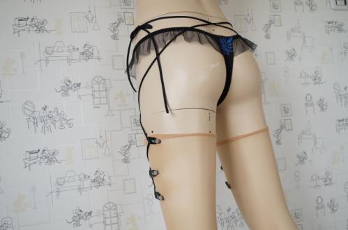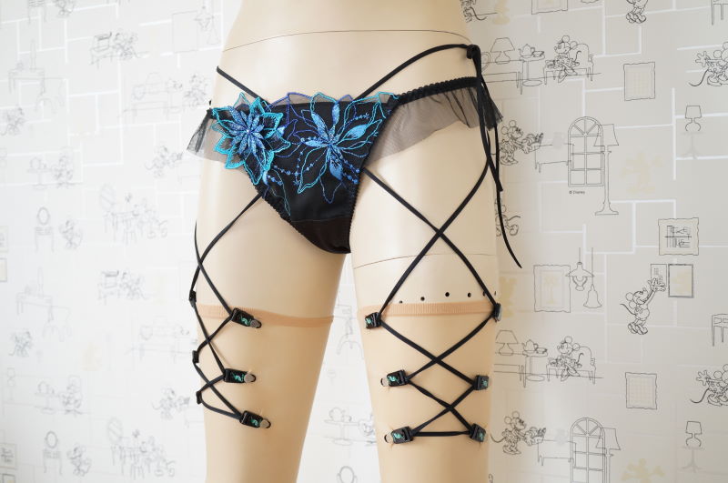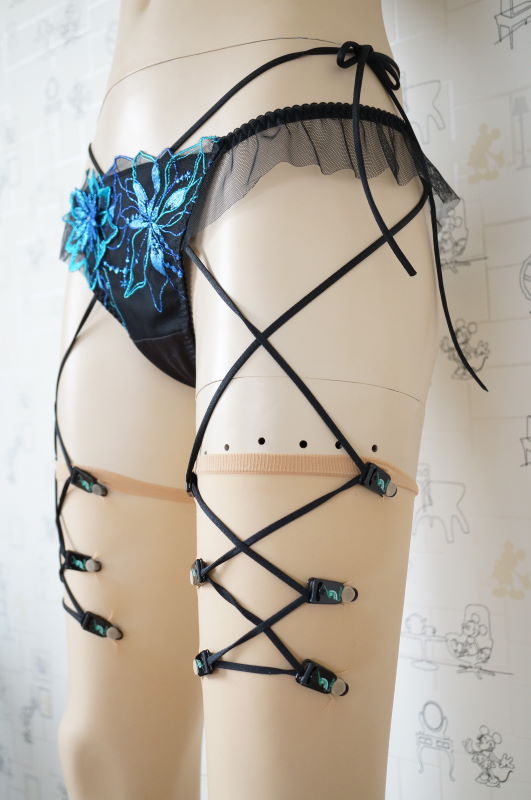 延長紐をウエストに縛り付けることにより、ガーターベルトの機能をもたせました。