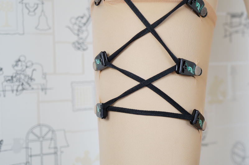 コルピアガーターベルトでは、ふともも全体を締め付けて、吊り上げますので、