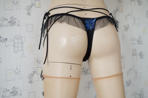 コルピアガーターベルトは、反対に下から縛り始めて、上をウエストに巻きつけてからリボンにします。